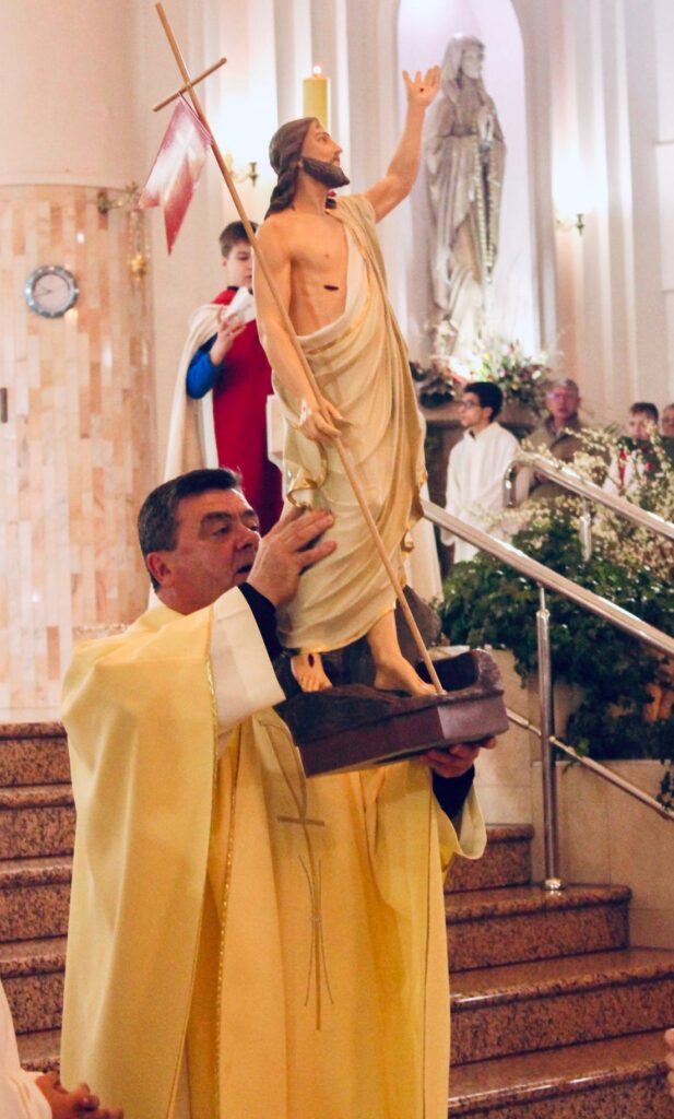 Vă invităm să celebrăm împreună Vigilia Pascală și să ne bucurăm împreună în zilele de Paști de întâlnirea cu Isus Înviat. …cine îl întâlnește pe Isus înviat este transformat în interior; Dar, nu poate fi „văzut” cel Înviat fără „a crede” în el…., …haideți să recunoaștem: chiar și în viața noastră de credință cărăm după noi prea mult balast; sărbători pascale cu iepurași, cu showuri la nesfârșit cu petreceri și grătare …și fără nici o referință la CEL ÎNVIAT! Unde este credința noastră pascală? Să-l rugăm pe Domnul ca El să ne strige pe fiecare dintre noi pe nume si astfel să ne schimbe, deschizându-ne spre „viziunea” credinței. Credința se naște din întâlnirea personala cu Cristos înviat, si devine avânt plin de curaj si de libertate care te face sa strigi tuturor oamenilor: Isus a înviat si traieste pentru totdeauna. Aceasta este misiunea ucenicilor Domnului din orice timp precum si din vremea noastră. „Dacă ați înviat împreuna cu Cristos – ne îndeamnă sfântul Paul – căutați cele de sus… cugetați la cele de sus, nu la cele de pe pământ”. Acest lucru nu vrea să spună că trebuie să ne îndepărtam de datoriile zilnice, să fim dezinteresați de realitățile pământești: înseamnă mai degrabă că trebuie să reînsuflețim orice activitate umană cu o respirație supranaturală, înseamnă să devenim vestitori și martori bucuroși ai învierii lui Cristos, cel viu în veșnicie.