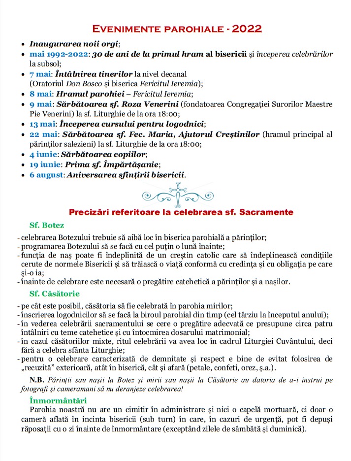 ANUNȚURILE DUMINICII a II a PM – 2022