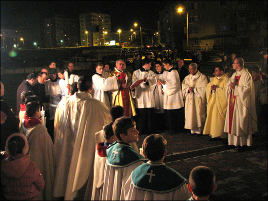 Sfânta Liturghie din noaptea Învierii şi procesiunea cu lumânãri (12 aprilie 2009)