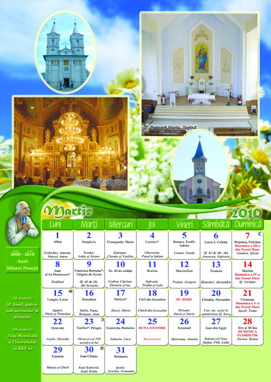 Calendar creştin catolic-ortodox 2010 al Decanatului de Bacãu