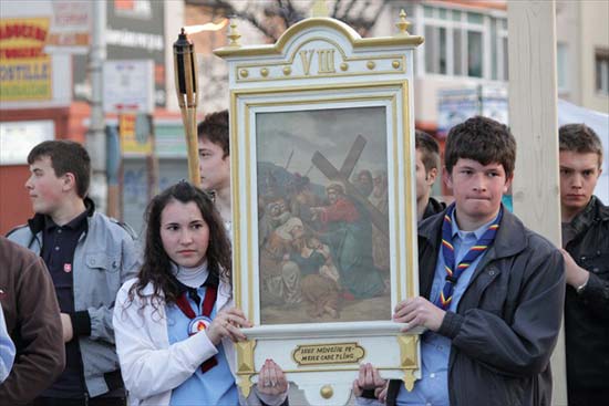 Calea crucii condusa de tineri pe strazile Bacãului (17 aprilie 2011)